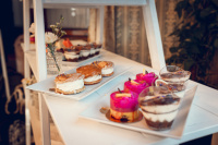 varianta B) MINI zákusky: malinový věneček pařížská tyčinka 2x (bls) mini tartaletka jahoda-vanilka mini tartaletka lískový oříšek makronka 2x (bls) panna cotta s rozvarem z lesního ovoce a s karamelem (bls) maková kostička se šlehačkou a borůvkou brownie s pařížskou...