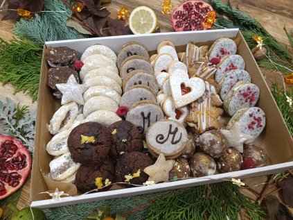 CUKROVÍ KLASIK 1 kg DATLOVÉ HVĚZDIČKY S OŘÍŠKOVÝM KRÉMEM 5 KS (01e, 08a, 06, 05, 08b) MAKOVÉ OVÁLKY S CITRÓNOVÝM KRÉMEM, 5 KS (01a, 01e, 06, 08a) MOKA KOLEČKA, 6 KS (01a,08a, 08c, 06) LINECKÁ SRDÍČKA S JAHODOVÝM DŽEMEM, 6 KS (01a, 01e, 06, 08a) ZÁZVOROVÉ MINI...